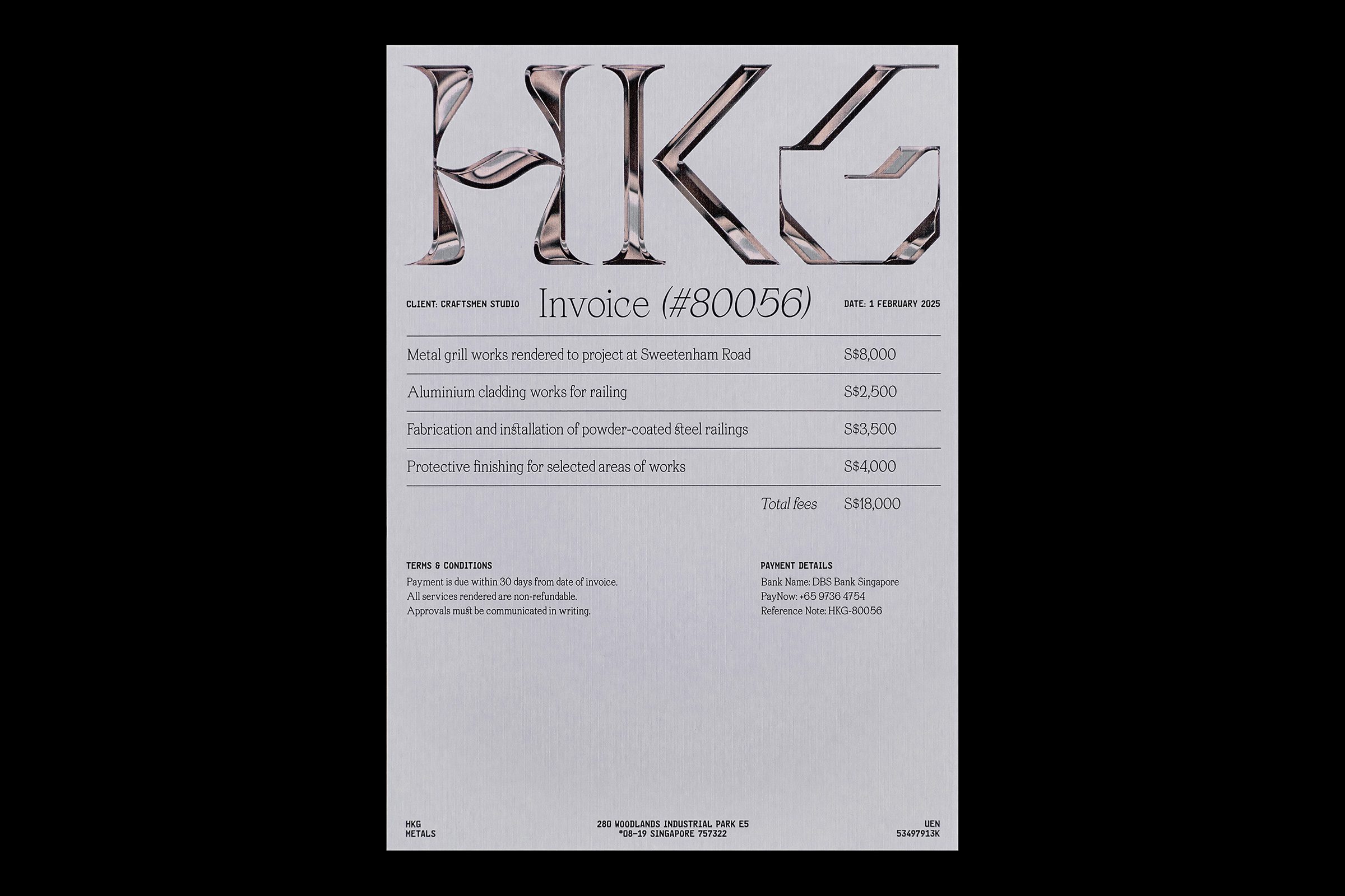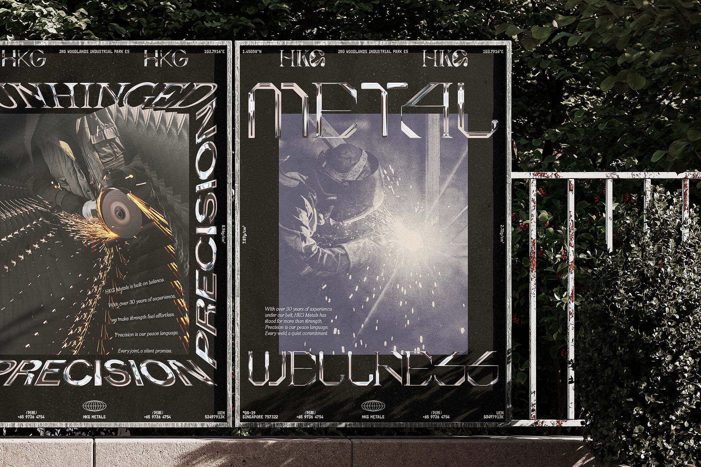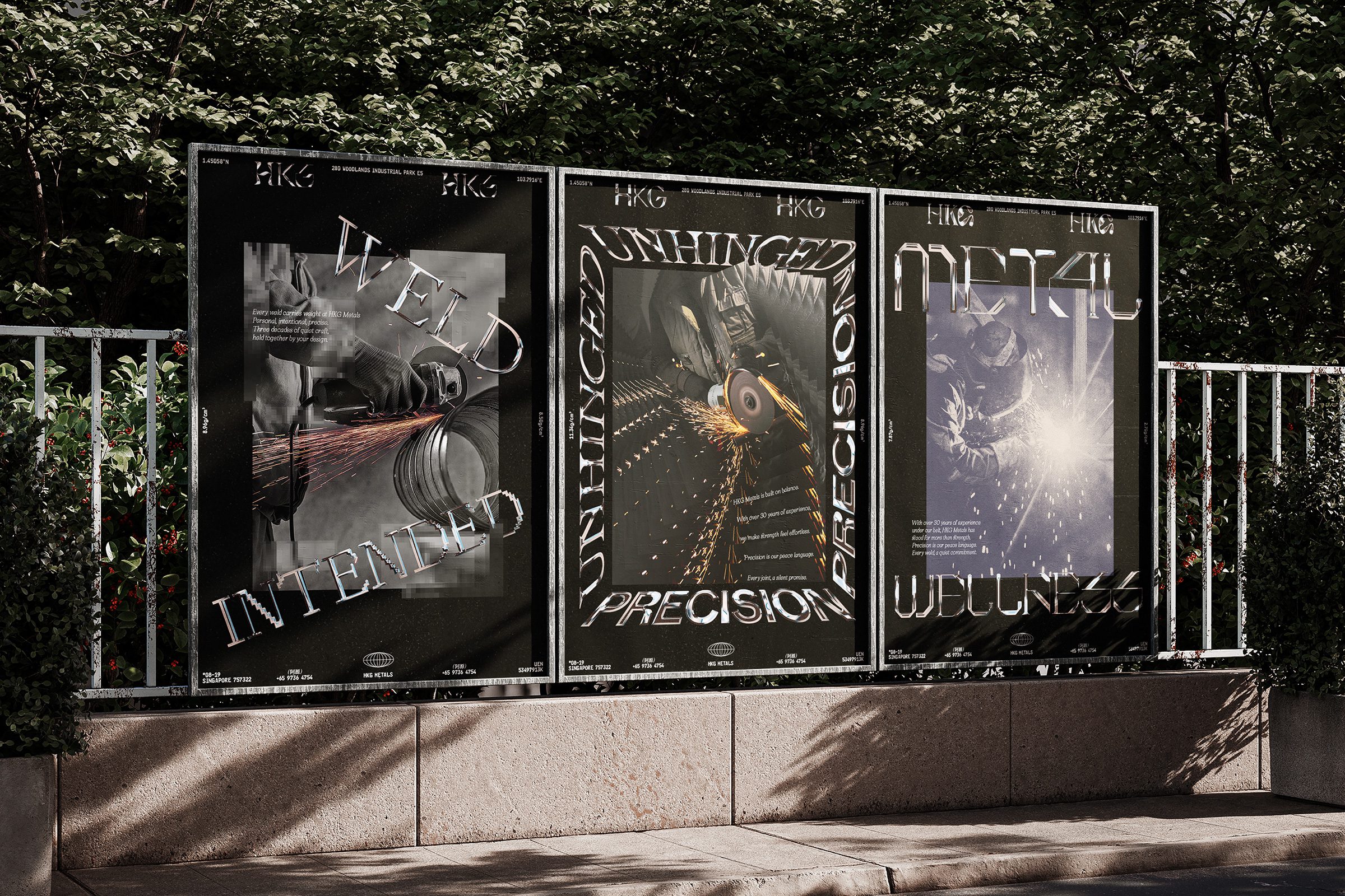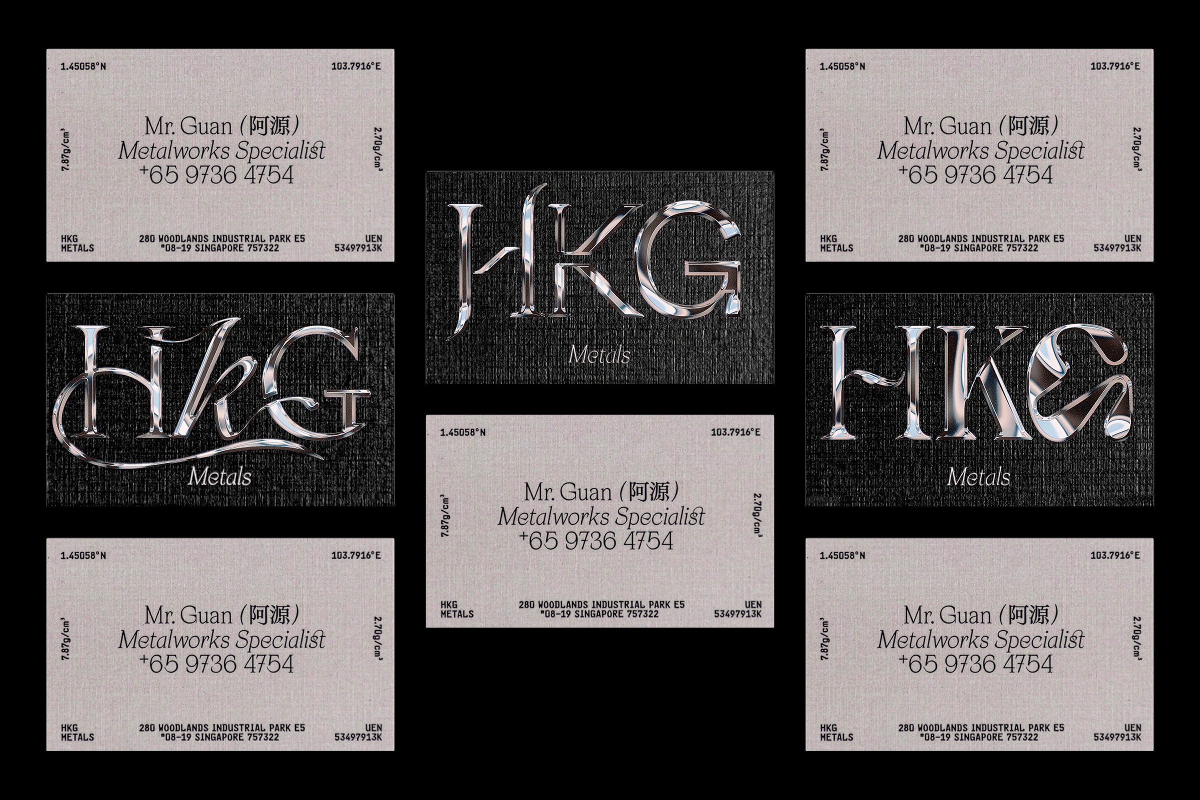 Rooted in the concept of ‘metal wellness’, the branding reimagines strength as stability, intention, and peace of mind. This idea comes to life through a series of typographic experiments based on the founder’s initials, HKG, each rendered in a chromed-metallic finish that captures the reflective, technical, and tactile nature of metal itself.